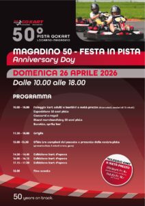 Inoltre, ci sarà una splendida esposizione sui 50 anni della pista, con immagini d’archivio, kart e accessori del passato.